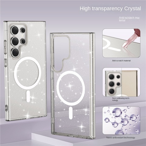 Lüks temizle Glitter Bling manyetik telefon kılıfı Samsung Galaxy S24 Ultra Ultra S23 FE S22 darbeye tampon arka kapak